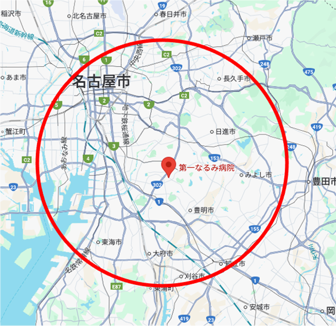 当院より車で30分程度の距離(半径16km以内)で訪問可能です。